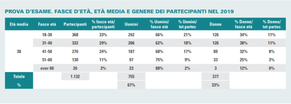 Complessivamente il 64% dei partecipanti ha meno di 40 anni, l’età media si attesta sui 37 anni, gli over 50 è la categoria meno interessata alla Prova Valutativa (13% dei partecipanti).