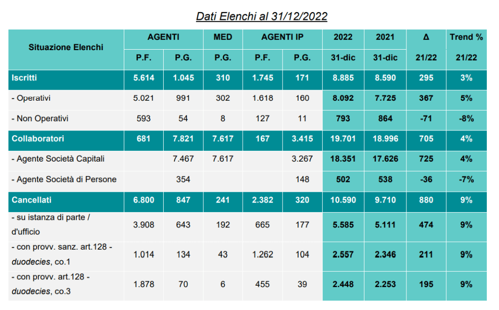 I dati sono di fatto confortanti: gli agenti persone fisiche sono cresciuti del 3,6 % rispetto al 2001 (5521) e gli Agenti persone giuridiche sono cresciuti del 4,6% a 1031 con 7259 collaboratori più 6,6%, i mediatori creditizi, che con i loro numerosi collaboratori sono una parte rilevante del mercato, continuano a decrescere scegliendo un modello di relativo “gigantismo” contrariamente agli agenti in attività finanziaria.