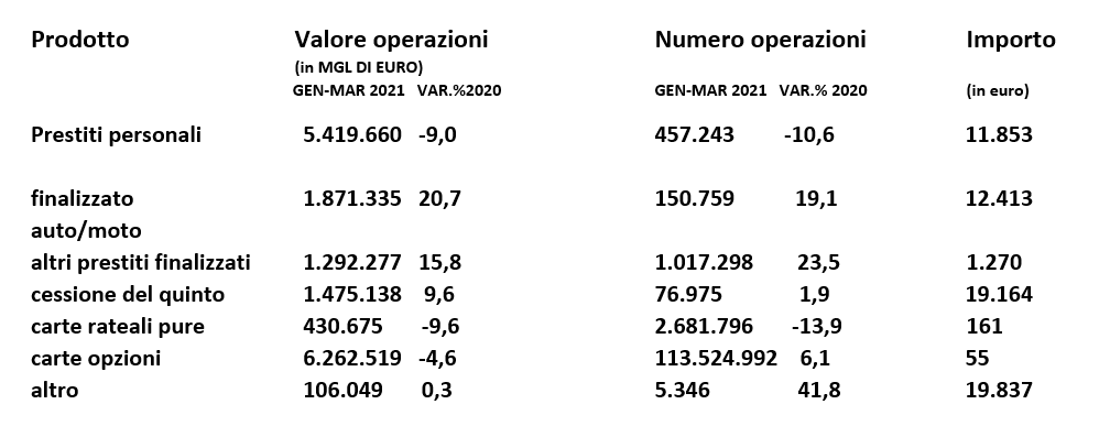 Evoluzione del settore del credito al consumo. Dati a fine marzo 2021